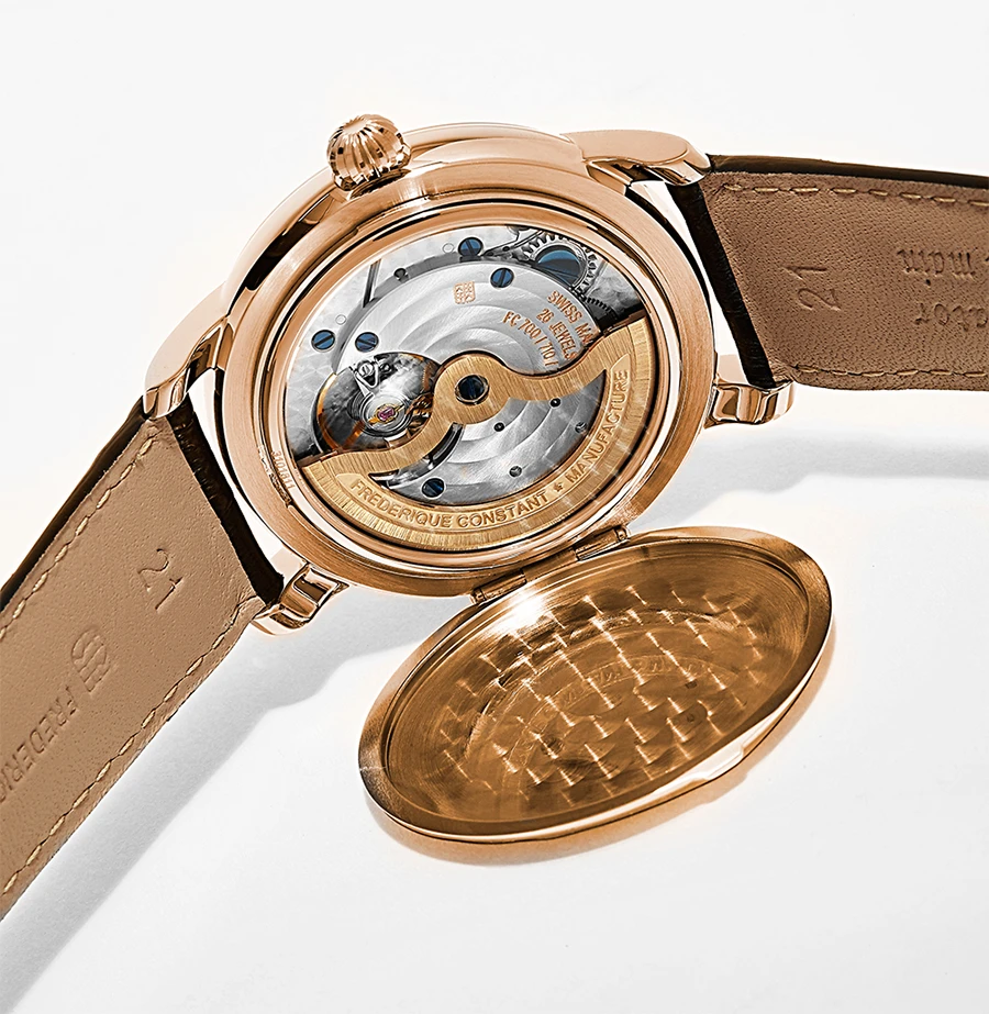 Frederique Constant is known for delicate rounded cases that require many hours of hand polishing.